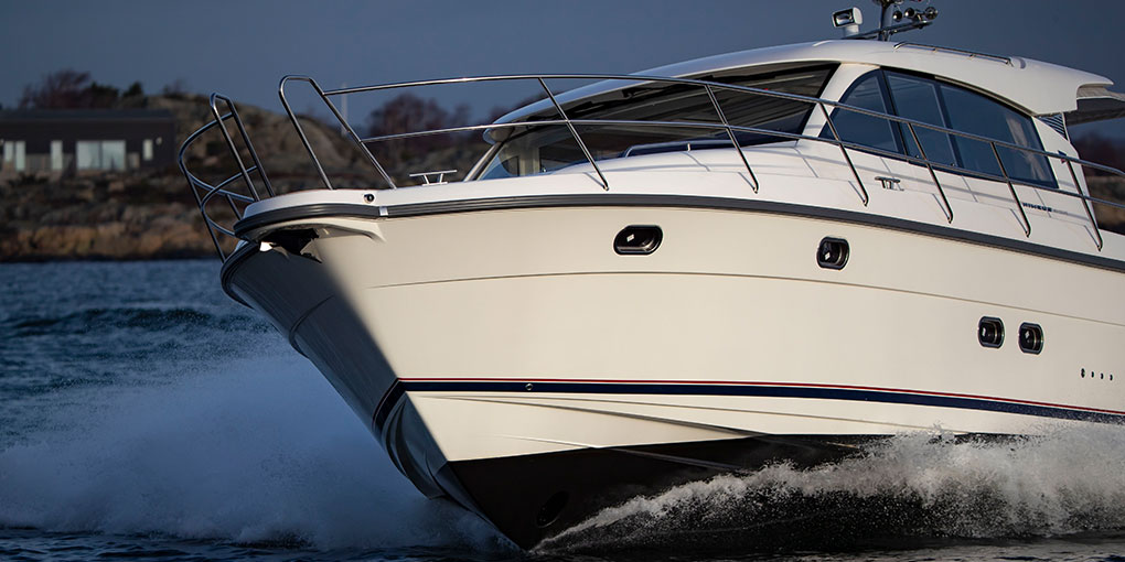 Moderne Optik mit cleveren, funktionalen Lösungen. Die neue 405 Coupé ist die größte der beliebten und preisgekrönten “sidewalk” Nimbus Coupé Modelle. Das “sidewalk” Deckslayout maximiert den Gangbord auf der Steuerbordseite, um leicht auf das Boot zu gelangen und an Deck zu verweilen, während es gleichzeitig mehr Geräumigkeit im Cockpit und in den Kabinen bietet.