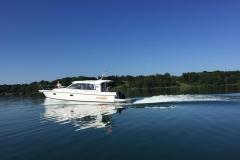 Nimbus ist der erste Hersteller, dem es durch ein neuartiges Rumpfkonzept, gepaart mit dem modernsten Antriebssystem von Torqeedo gelungen ist, ein vollwertiges Kabinenboot, zu 100% elektrisch zu betreiben. Das Fahrverhalten ist einzigartig. Keine Motorengeräusche, keine Motorenvibrationen, keine Abgase und somit kein Geruch, machen das Bootfahren jetzt noch attraktiver. Die Marschgeschwindigkeit beträgt rund 10 km/h, die Höchstgeschwindigkeit liegt bei rund 18 km/h. Damit ist das Boot schneller, wie die meisten Stahlverdränger und Segelboote. Die Reichweite variiert in der Abhängigkeit der Geschwindigkeit und der Batteriekapazität.
