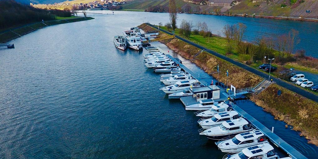 Der Yachthafen Traben-Trarbach bei Mosel km 103,7 liegt im Oberwasser der Schleuse Enkirch und ist sicherlich einer der schönsten Yachthäfen an der Mittelmosel.